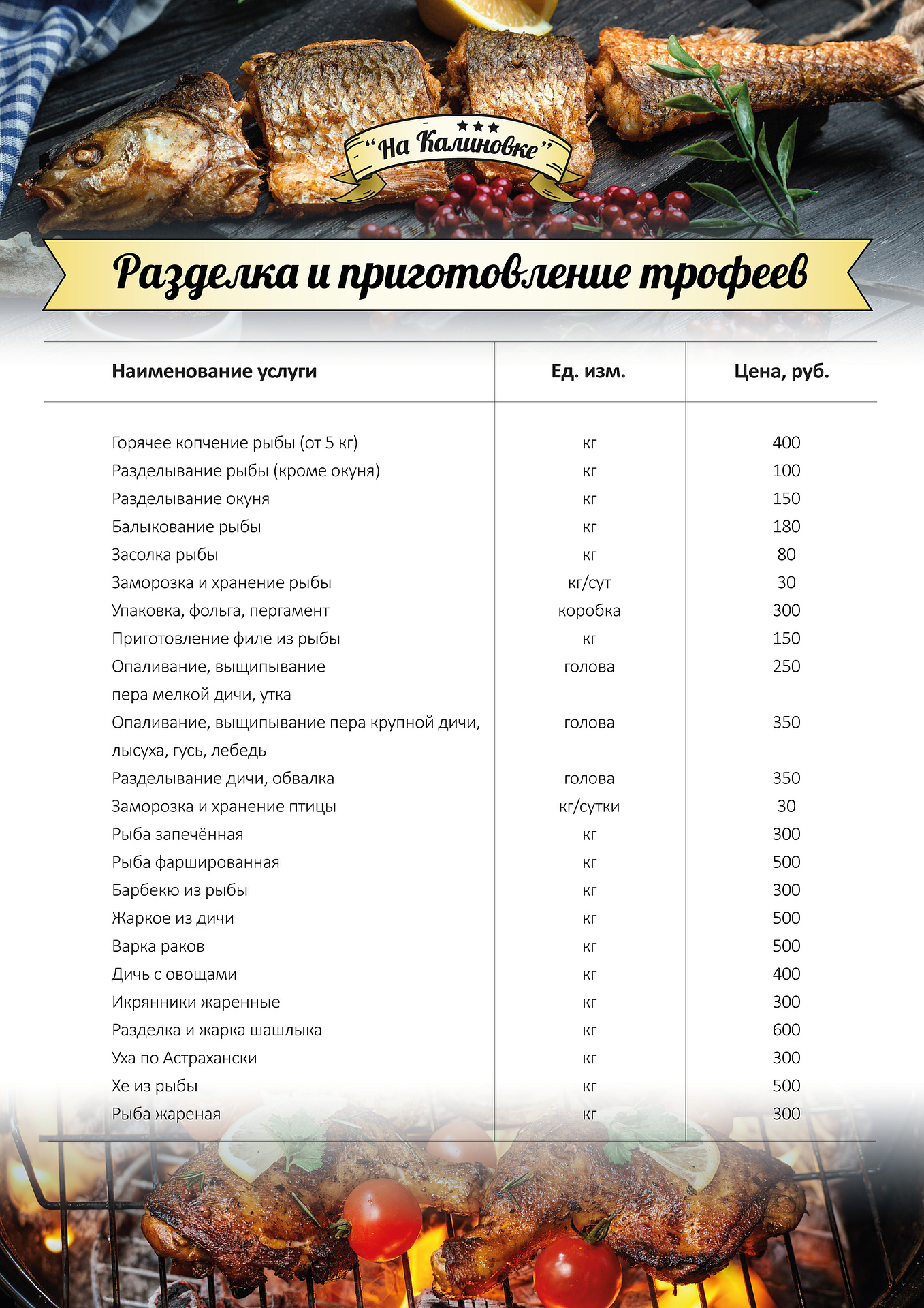 По вашему желанию мы можем приготовить пойманную рыбу. Об этом необходимо сообщить администратору заранее.