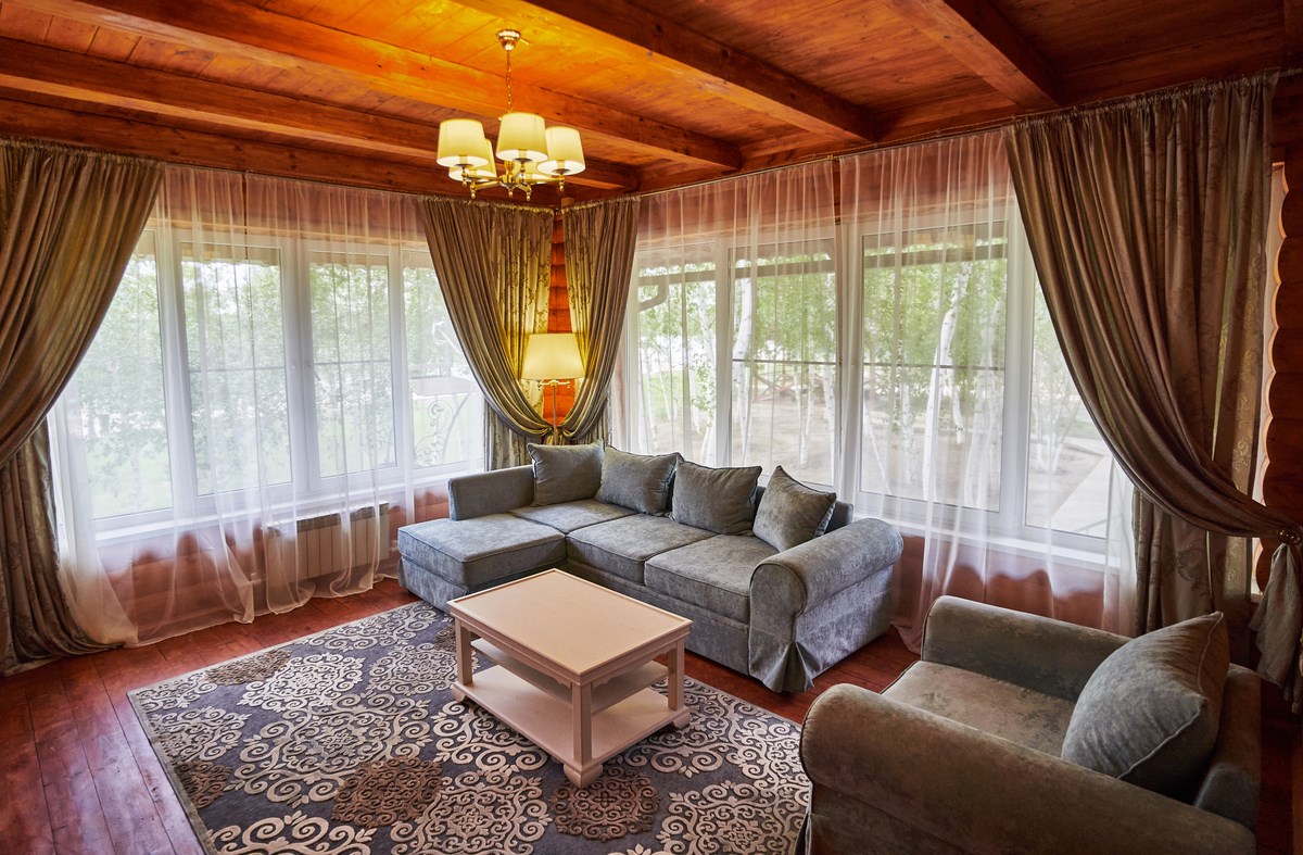 В гостиной большой двуместный диван – дополнительные 2 спальных места.