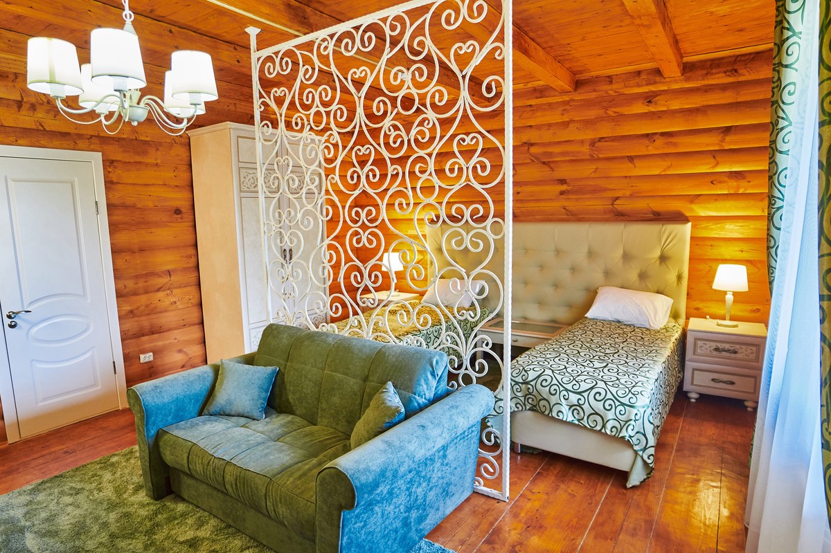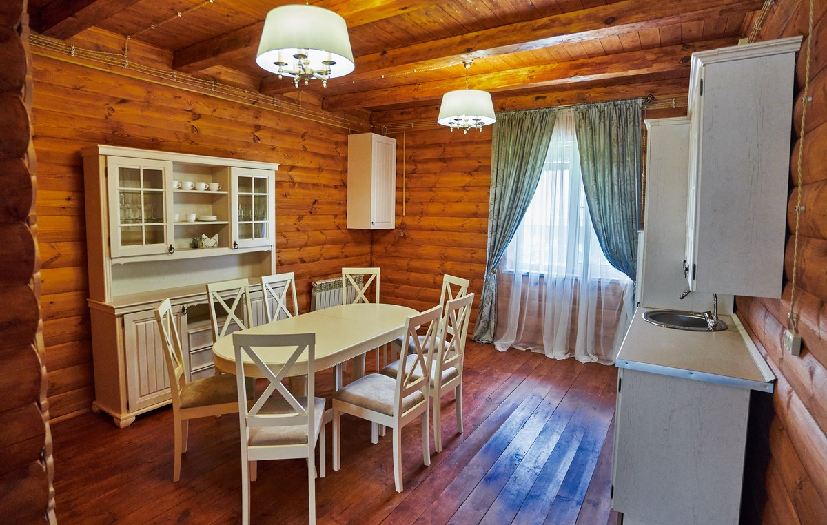 Максимальное размещение в коттедже – 8 человек: 4 основных и 4 дополнительных.